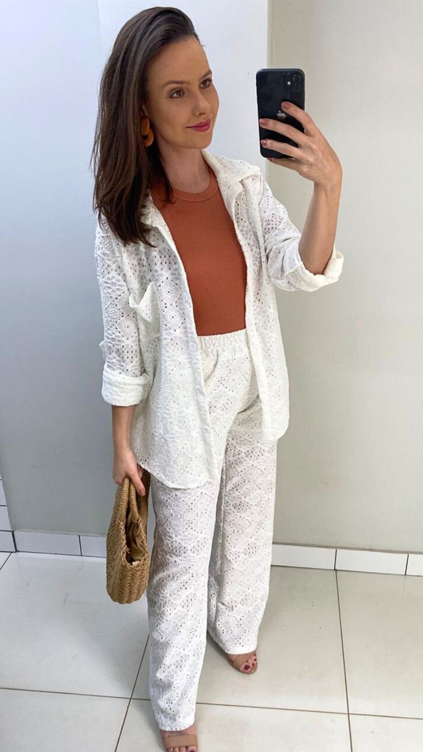 O conjunto off white de manga longa traz elegância e frescor em cada detalhe. Com caimento moderno e toque macio, é perfeito para criar um visual clean e sofisticado.