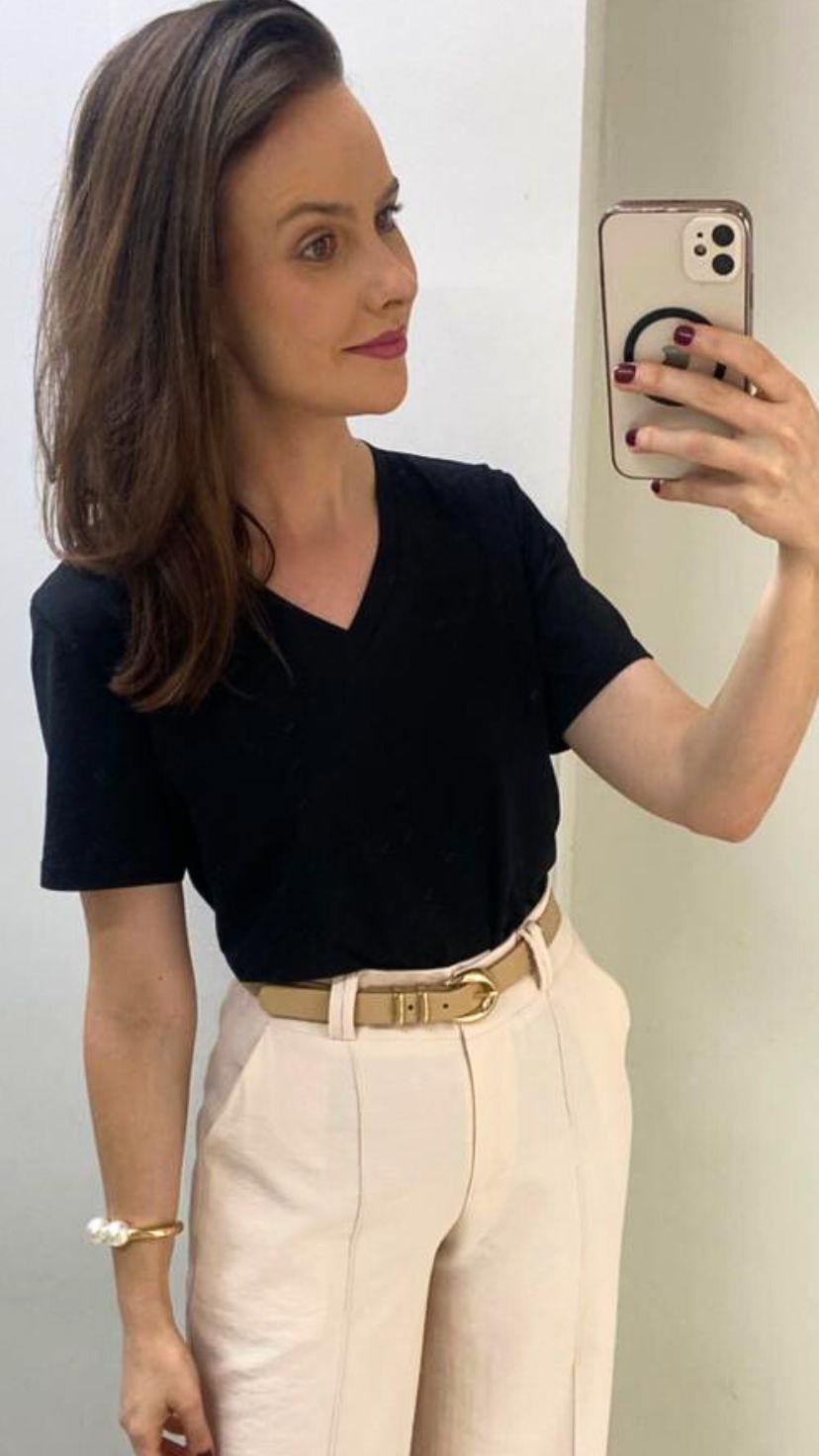 Camiseta 100% cotton, com decote V que traz um toque de leveza e elegância. Macia, respirável e perfeita para o dia a dia com muito conforto e estilo